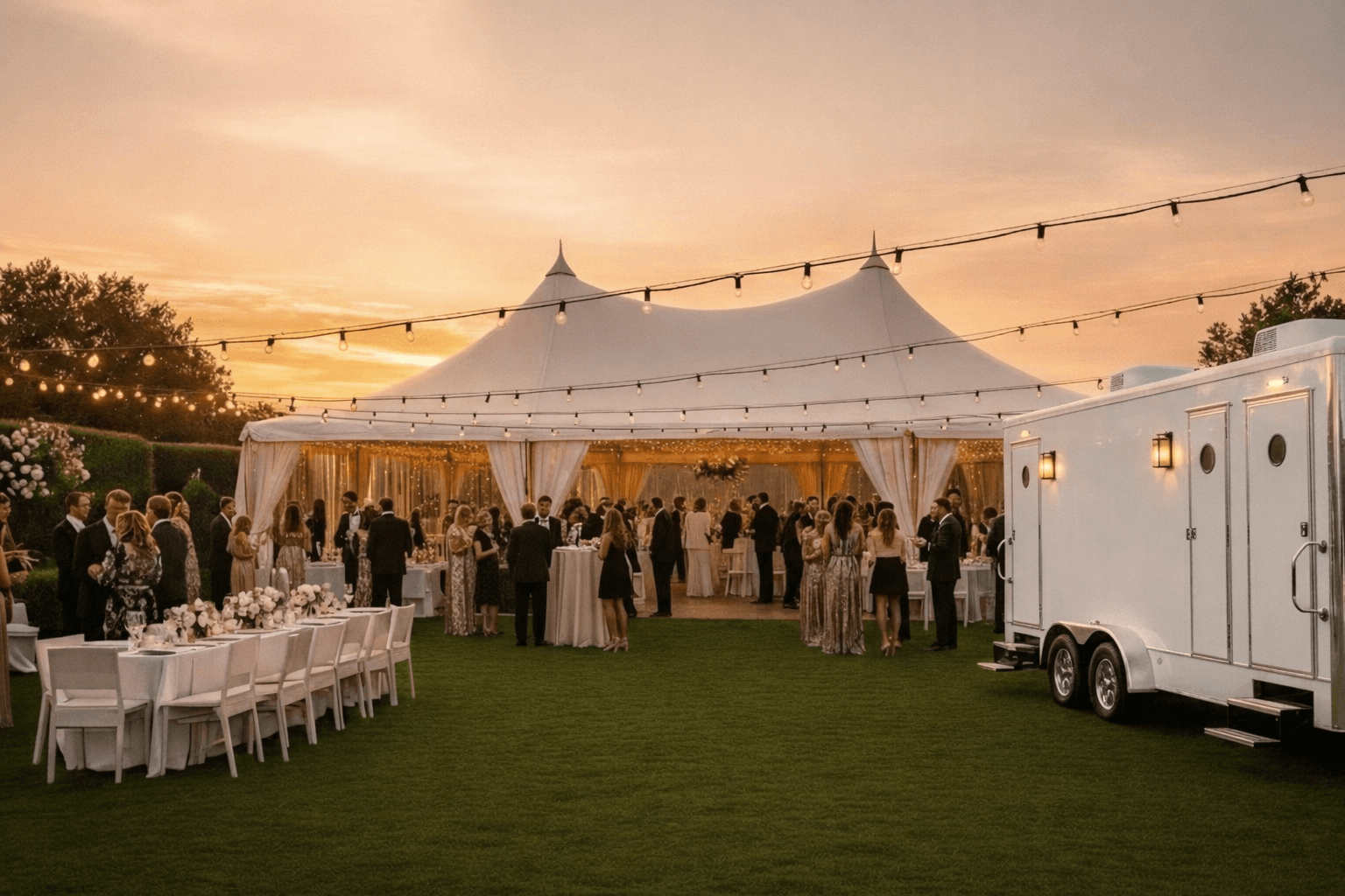Elevate your event with climate-controlled, beautifully appointed restroom trailers. Perfect for weddings, corporate events, and special occasions.